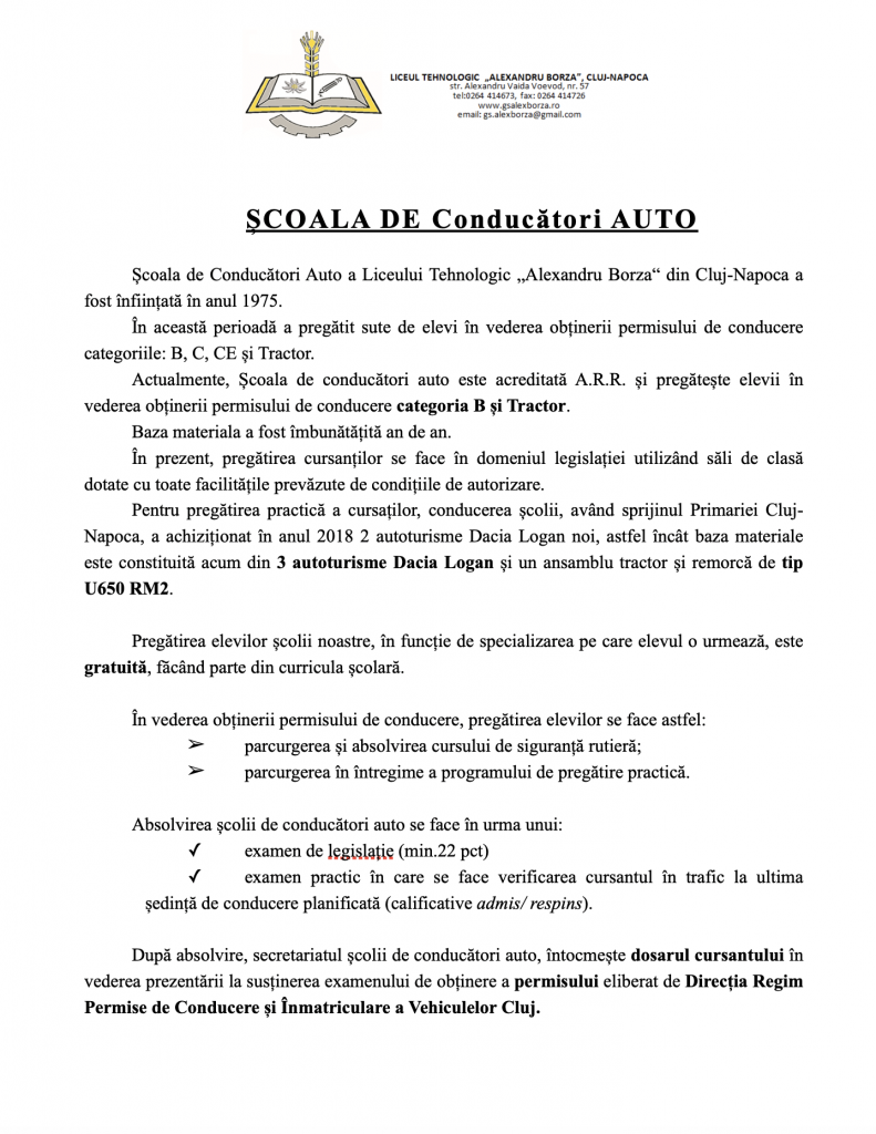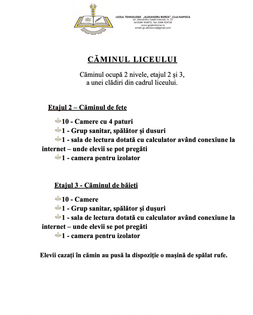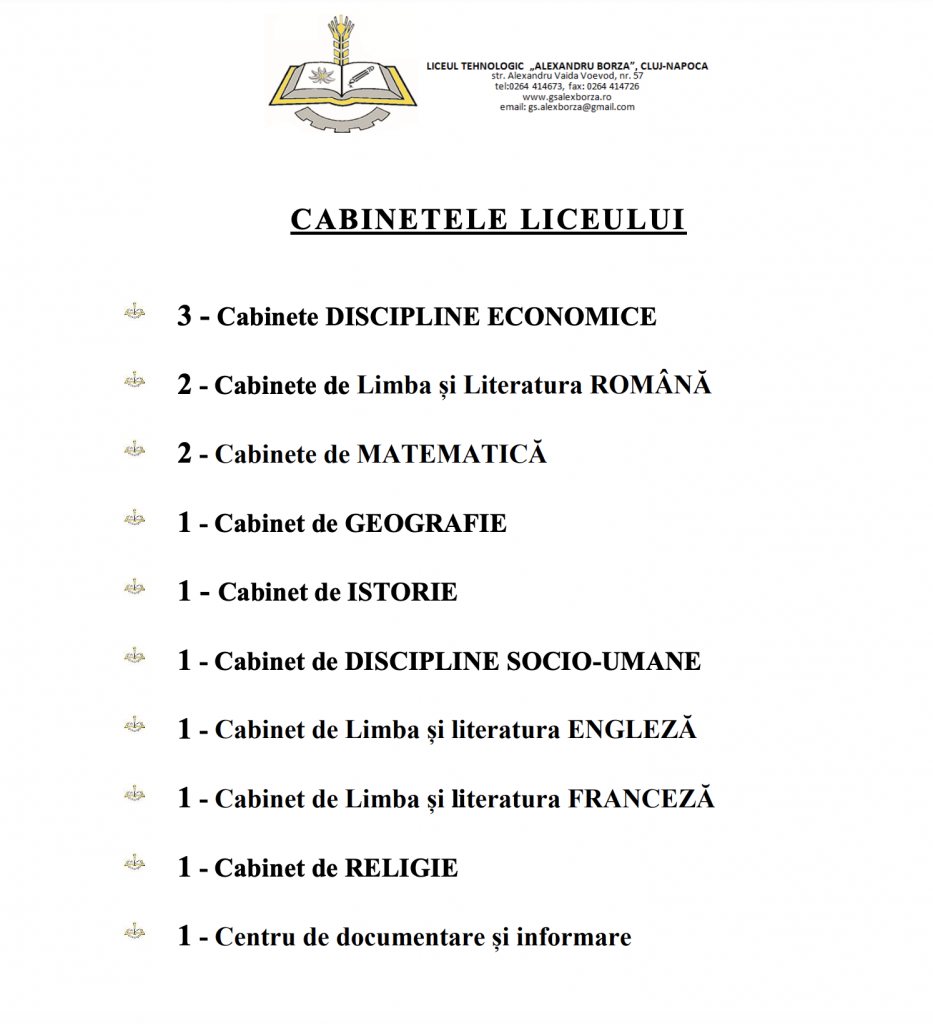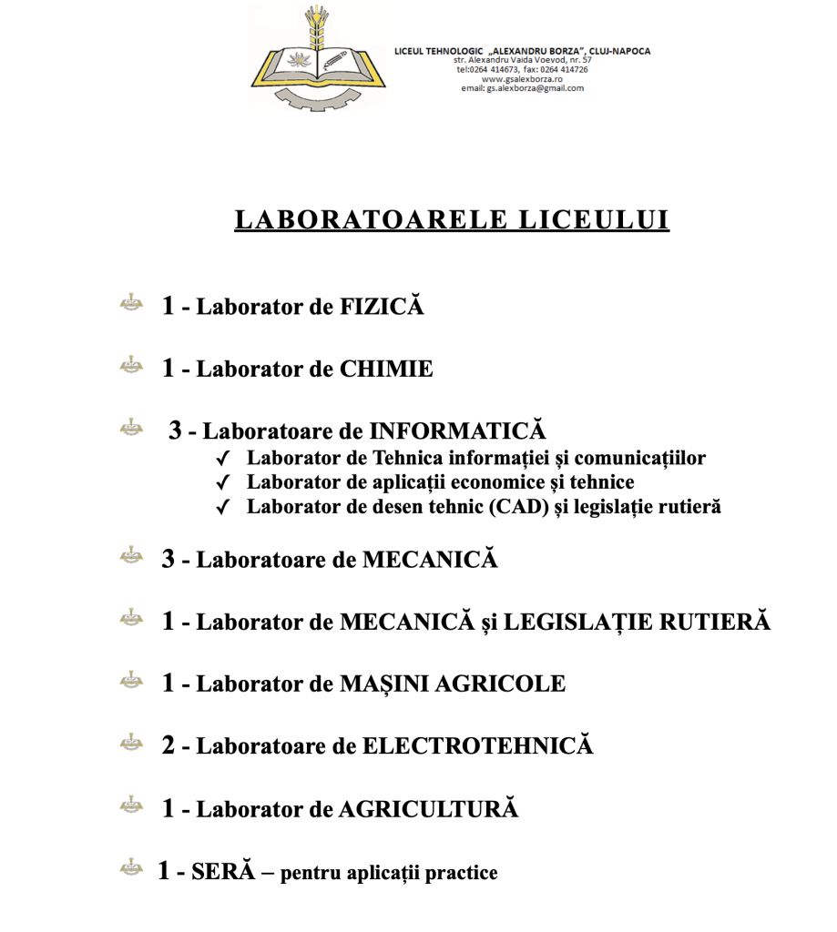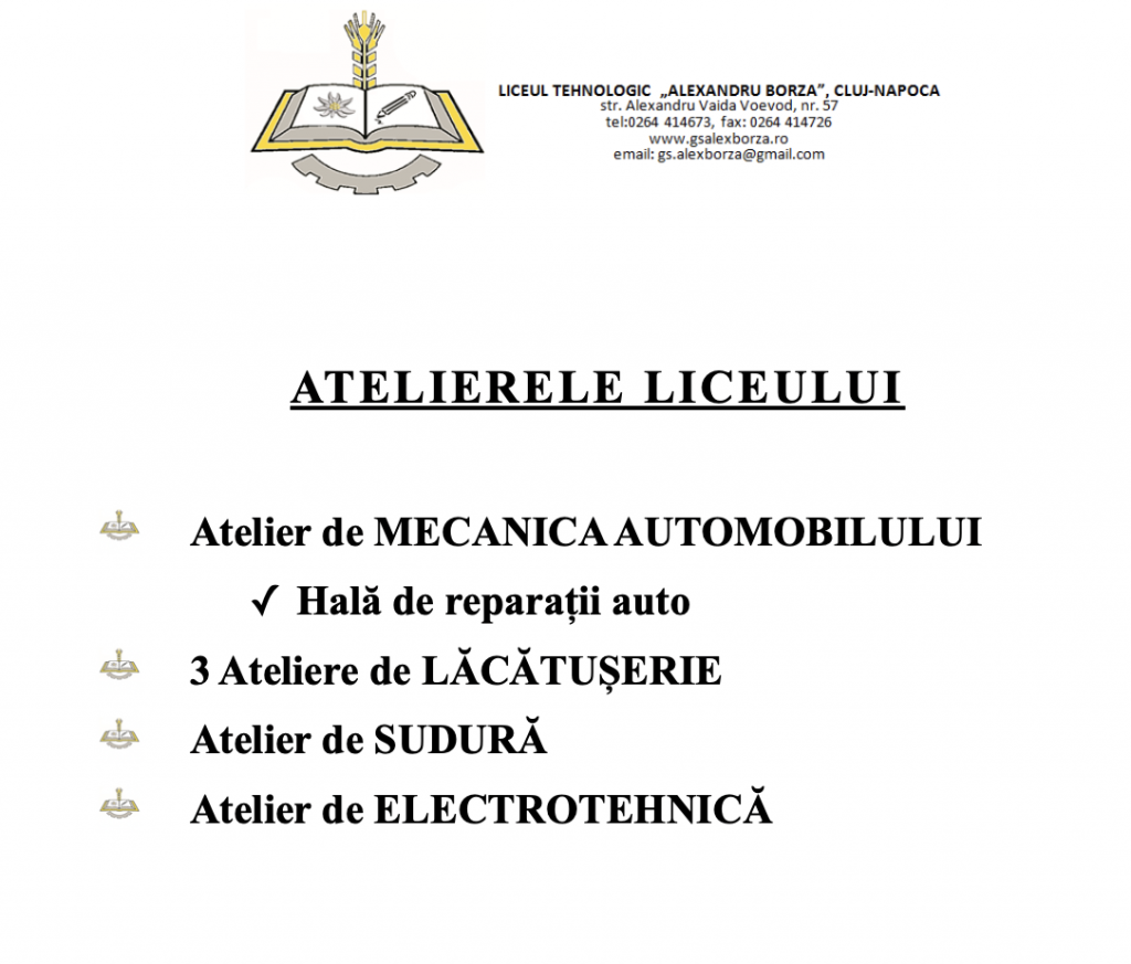 RESURSE MATERIALE BAZA MATERIALACABINETELABORATOAREATELIERESALA DE SPORTCĂMINCANTINAȘCOALA DE SOFERI VEZI POZE CABINETE VEZI POZE LABORATOARE VEZI POZE ATELIER VEZI POZE CĂMIN